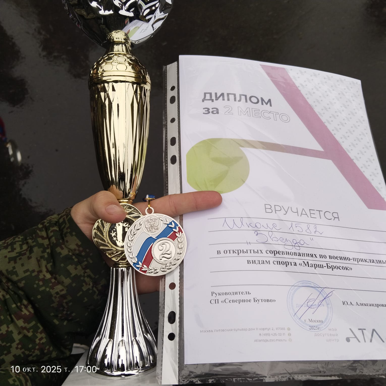 Кадеты школы 1582 приняли участие в соревновании по военно- прикладным видам спорта "Марш- бросок" и заняли 2 место!