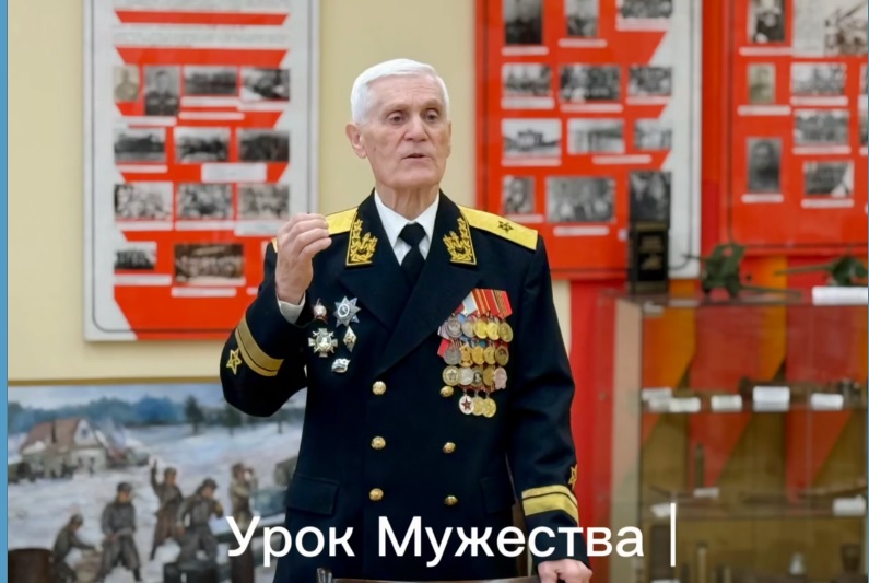 В тишине школьного музея Боевой славы, среди поблекших от времени фотографий и заветных реликвий героев, 20 ноября царила особенная атмосфера. На уроке мужества десятиклассники слушали рассказ ветерана Вооруженных сил Российской Федерации, контр-адмирала Овчаренко Алексея Михайловича, человека, чья жизнь была неразрывно связана с защитой Родины. В его глазах отражались и буря пережитых сражений, и тихая гордость за подвиг поколений, а каждый жест, каждое слово наполняли класс духом мужества и стойкости.